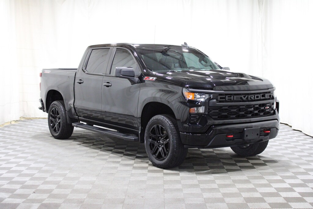 Finished in a sleek black exterior, this 4WD Trail Boss doesn't just talk the off-road talk-it hikes up its shocks and walks it. You want aggressive stance? Got it. Factory lift? Check. That don't mess with me grille? Present and accounted for.